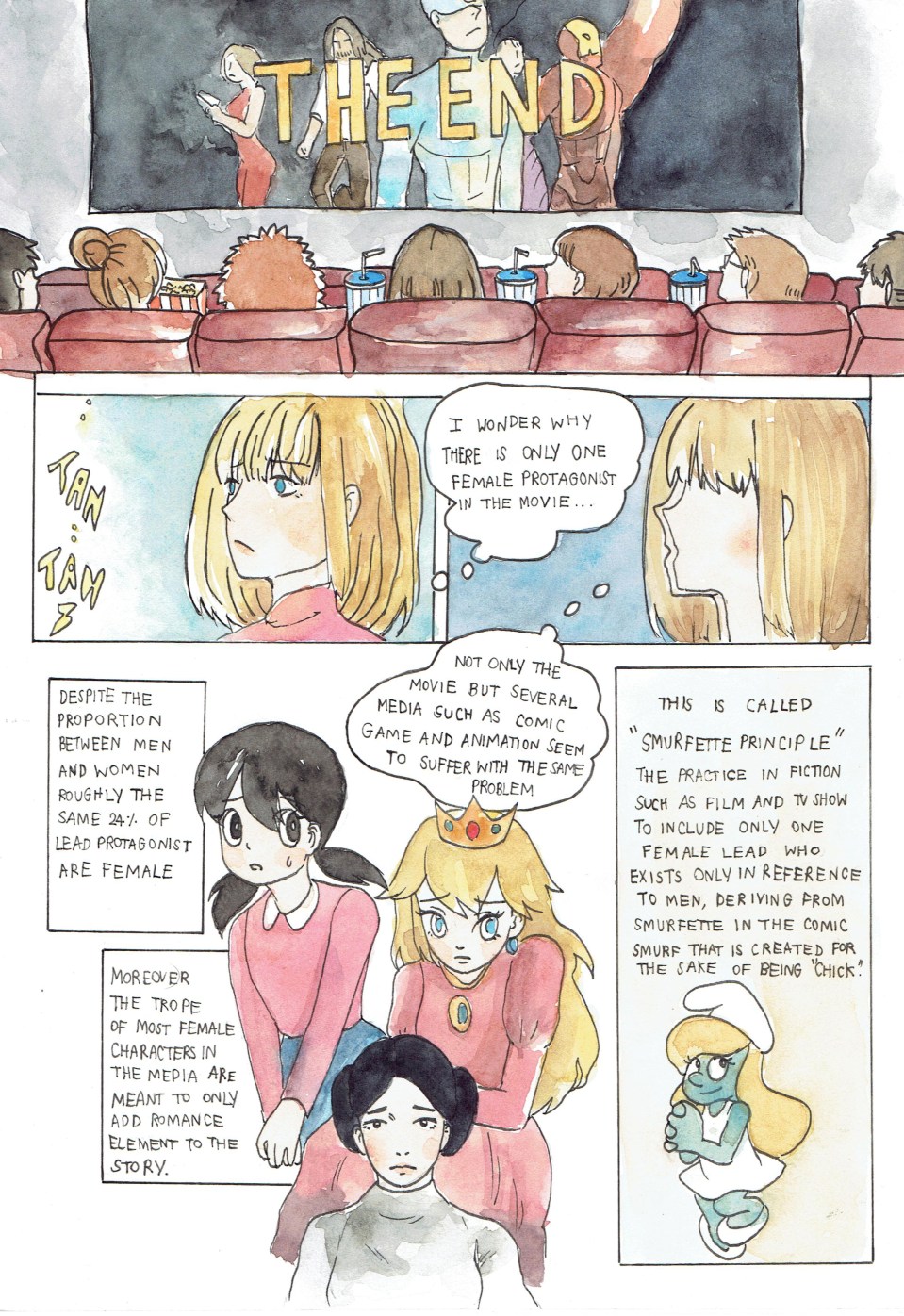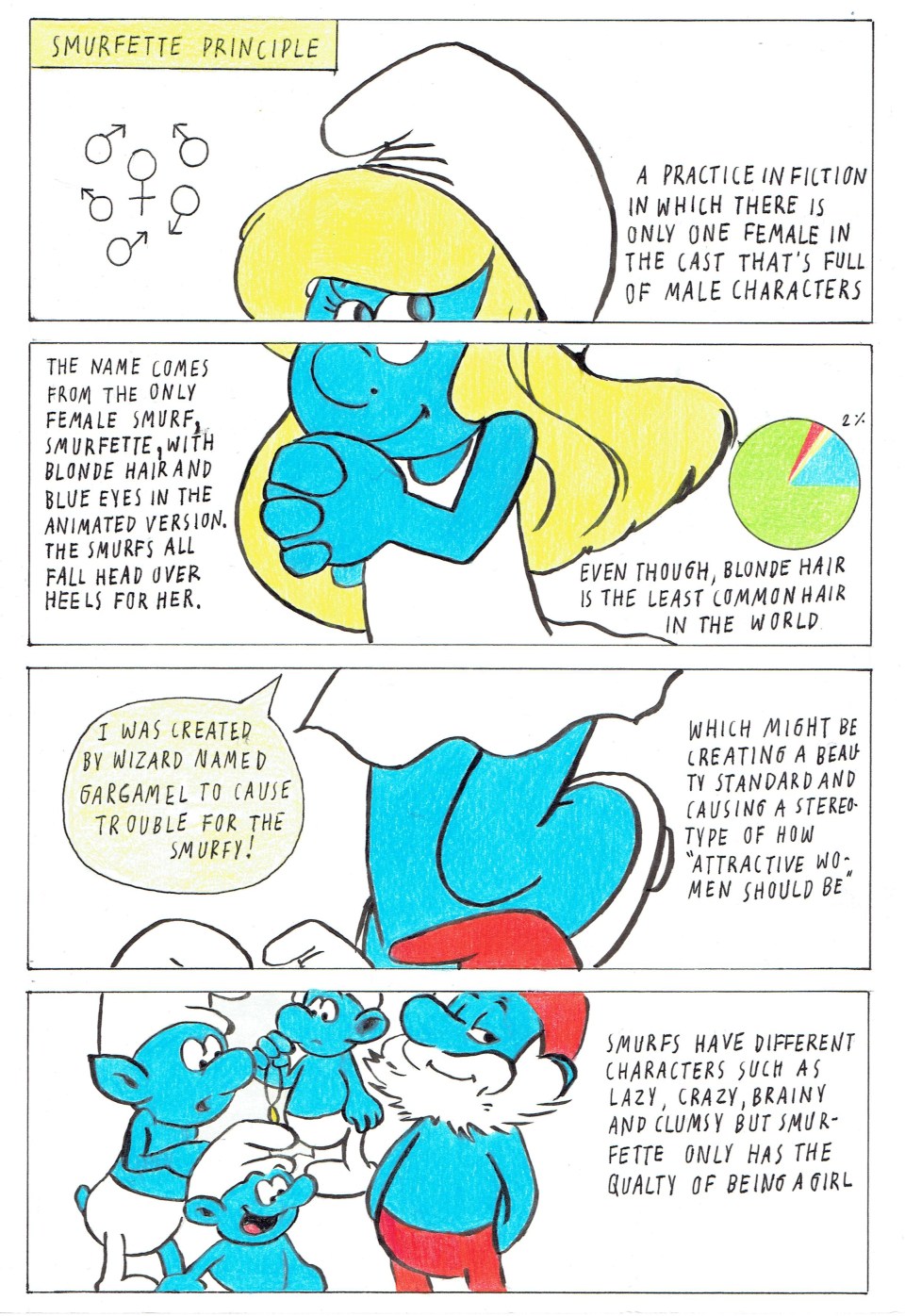 “The Smurfette Principle” Knowledge Comics (page 1/3) by 1st year CommDe students Grace, Chichi, Ping, Pang and Nene. March 2018. Based on the Smurfette character created by Peyo; and Katha Pollitt’s Smurfette Principle.“The Smurfette Principle” Knowledge Comics (page 2/3) by 1st year CommDe students Grace, Chichi, Ping, Pang and Nene. March 2018. Based on the Smurfette character created by Peyo; and Katha Pollitt’s Smurfette Principle.“The Smurfette Principle” Knowledge Comics (page 3/3) by 1st year CommDe students Grace, Chichi, Ping, Pang and Nene. March 2018. Based on the Smurfette character created by Peyo; and Katha Pollitt’s Smurfette Principle.“The Smurfette Principle” Knowledge Comics (page 1/3) by 1st year BALAC student Noey (BALAC: Program in Language and Culture, Faculty of Arts, Chulalongkorn University). November 2017. Based on the Smurfette character created by Peyo; and Katha Pollitt’s Smurfette Principle.“The Smurfette Principle” Knowledge Comics (page 2/3) by 1st year BALAC student Noey (BALAC: Program in Language and Culture, Faculty of Arts, Chulalongkorn University). November 2017. Based on the Smurfette character created by Peyo; and Katha Pollitt’s Smurfette Principle.“The Smurfette Principle” Knowledge Comics (page 3/3) by 1st year BALAC student Noey (BALAC: Program in Language and Culture, Faculty of Arts, Chulalongkorn University). November 2017. Based on the Smurfette character created by Peyo; and Katha Pollitt’s Smurfette Principle.“The Smurfette Principle” Knowledge Comics (page 1/2) by 4th year BALAC students Taew and Petch (BALAC: Program in Language and Culture, Faculty of Arts, Chulalongkorn University). November 2017. Based on the Smurfette character created by Peyo; and Katha Pollitt’s Smurfette Principle.“The Smurfette Principle” Knowledge Comics (page 2/2) by 4th year BALAC students Taew and Petch (BALAC: Program in Language and Culture, Faculty of Arts, Chulalongkorn University). November 2017. Based on the Smurfette character created by Peyo; and Katha Pollitt’s Smurfette Principle.