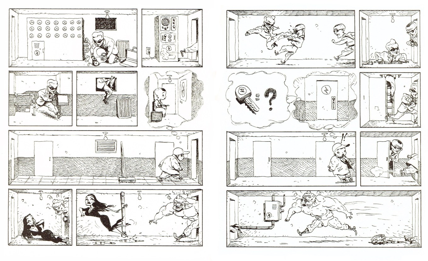 Pages 9 & 10 (out of 10) of Patrick McEown’s No Escape. ©1999 Fantagraphics/McEown