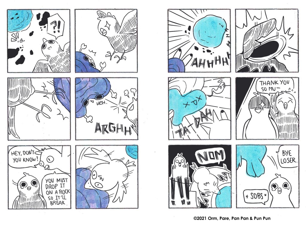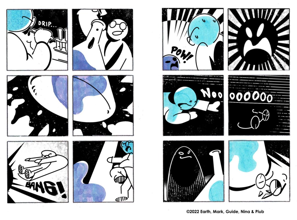 Here are 12 more #UltraVioletChallenge comics by CommDe students as a warm-up assignment for the “Introduction to Communication Studies” course (in 2021 and 2022). The goal is to create a figurative comics based on an imposed abstract comics, linked to the chapter on Semiotics (“Making Sense of Signs and Fragments”). Students were given one week to complete the assignment. Based on a constrained comics exercise used at Pierre Feuille Ciseaux international comics residency-lab.