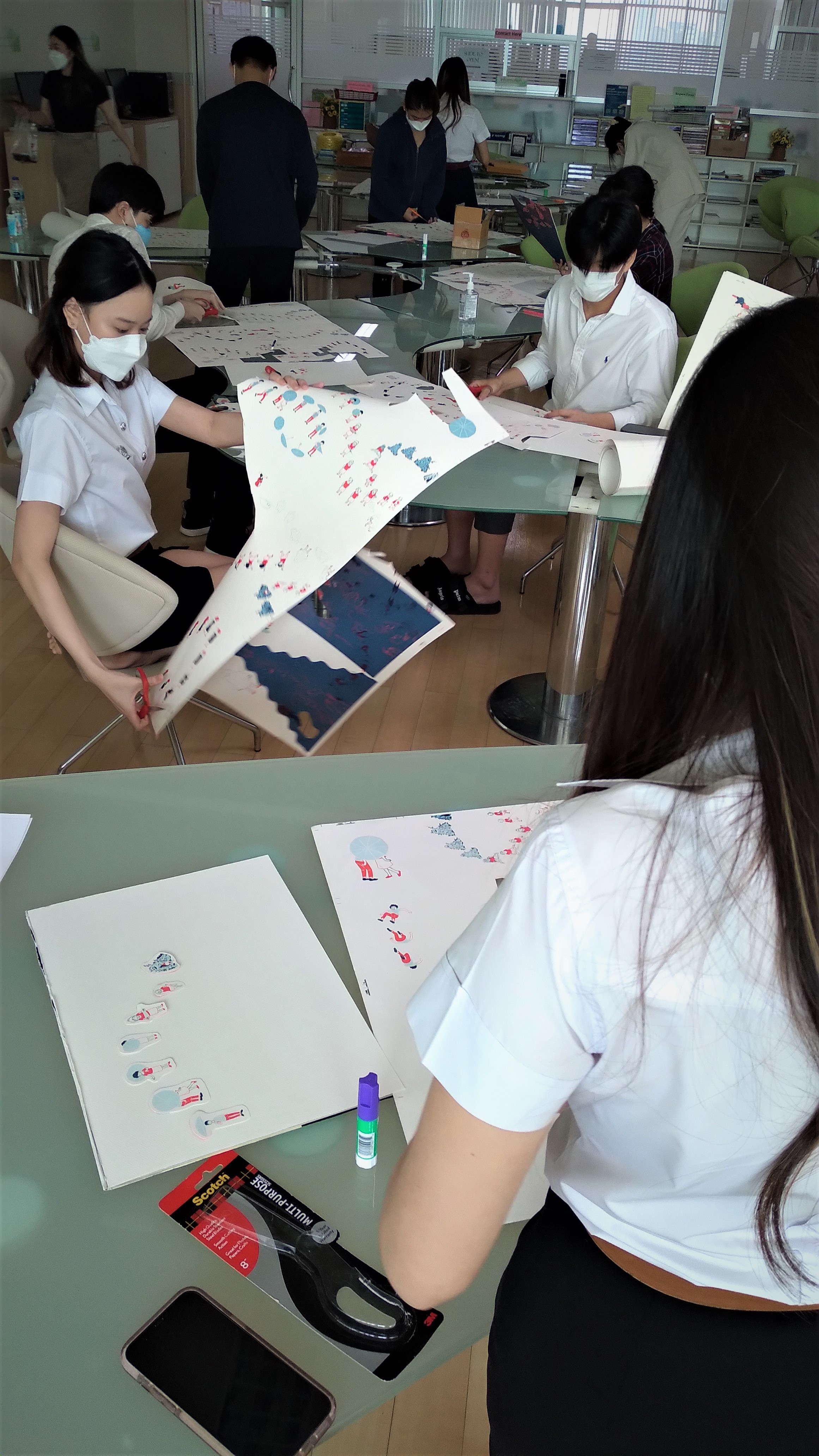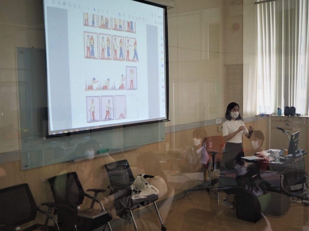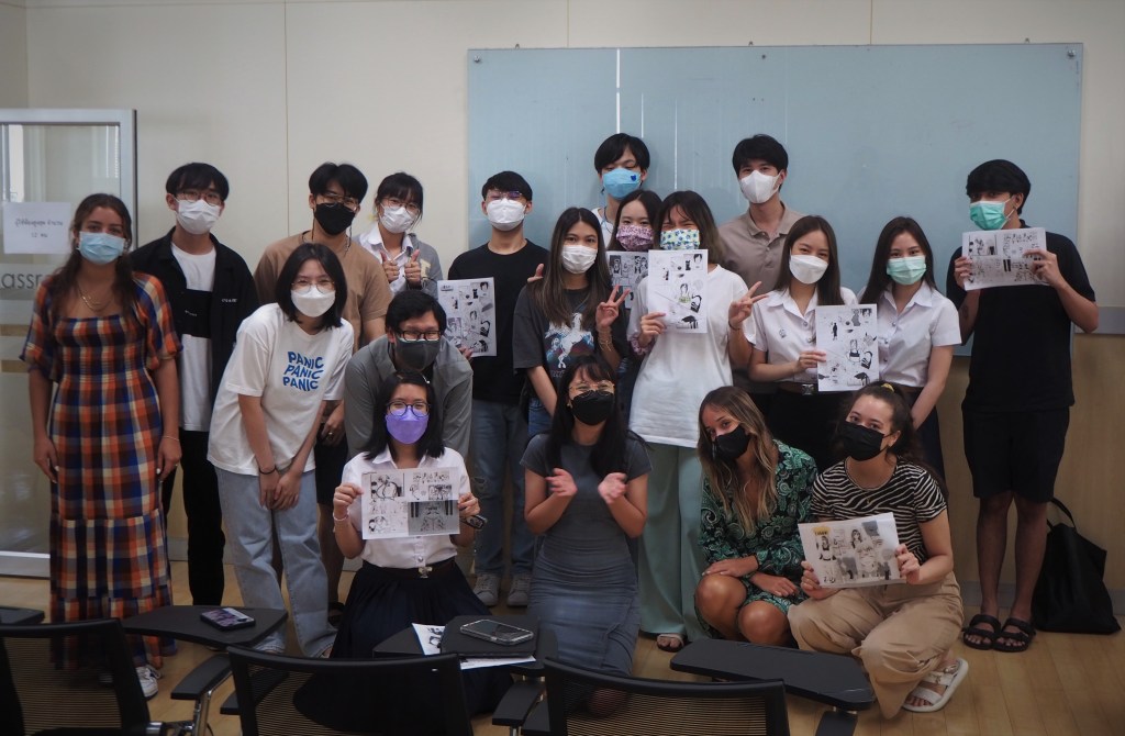 March 29, 2022. Fourth and final guest lecture/workshop for the semester. The Inter CommArts students of my Imaginative Communication course welcomed Thai artist Isaree Pipatpongsa (Izary P. Pipat). Khun Isaree talked about her thesis Rape culture awareness campaign through the female perspectives and Shojo Manga influences (School of Fine and Applied Arts, Bangkok University), with an introduction to the history of Shōjo Manga, her take on the genre to address the issue of Rape Culture in Thailand, her thesis process and design concepts, and a presentation of the resulting [and stunning] A1 comics digital prints, animation and journey kit. The students then participated in a workshop, revisiting Shōjo Manga pages with various techniques (drawing, tracing paper layers, screentones, diplopia effect, collage…) to reveal insidious aspects of the Rape Culture. It was a fascinating talk and highly meaningful and creative workshop! [All safety measures were respected with mandatory masks, hand-washing, and ATK tests before the lesson for all participants].