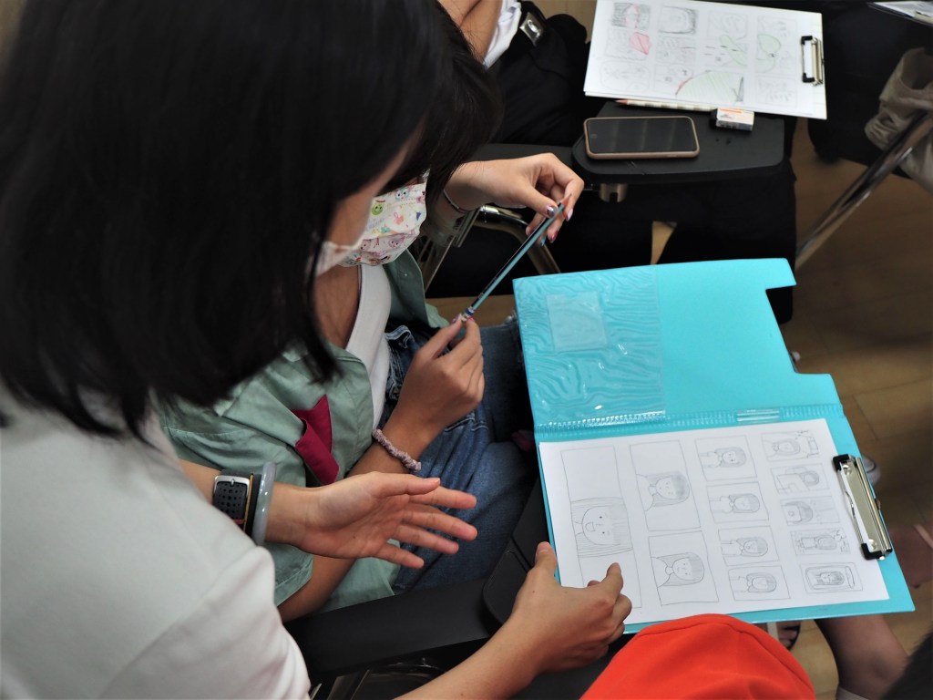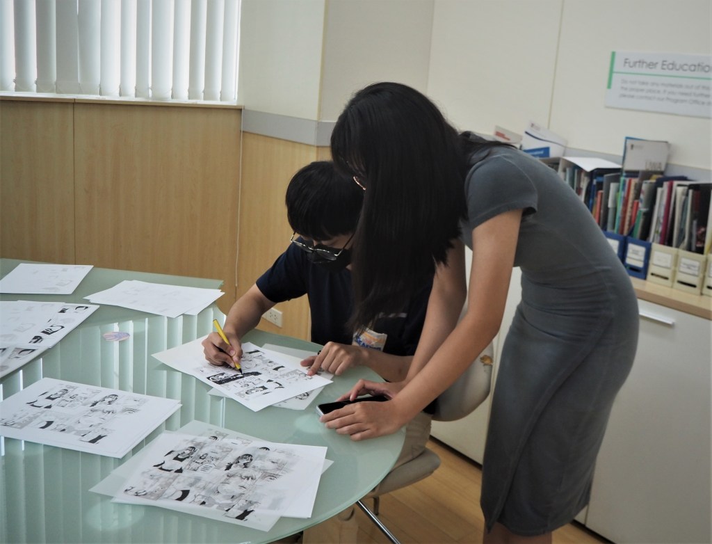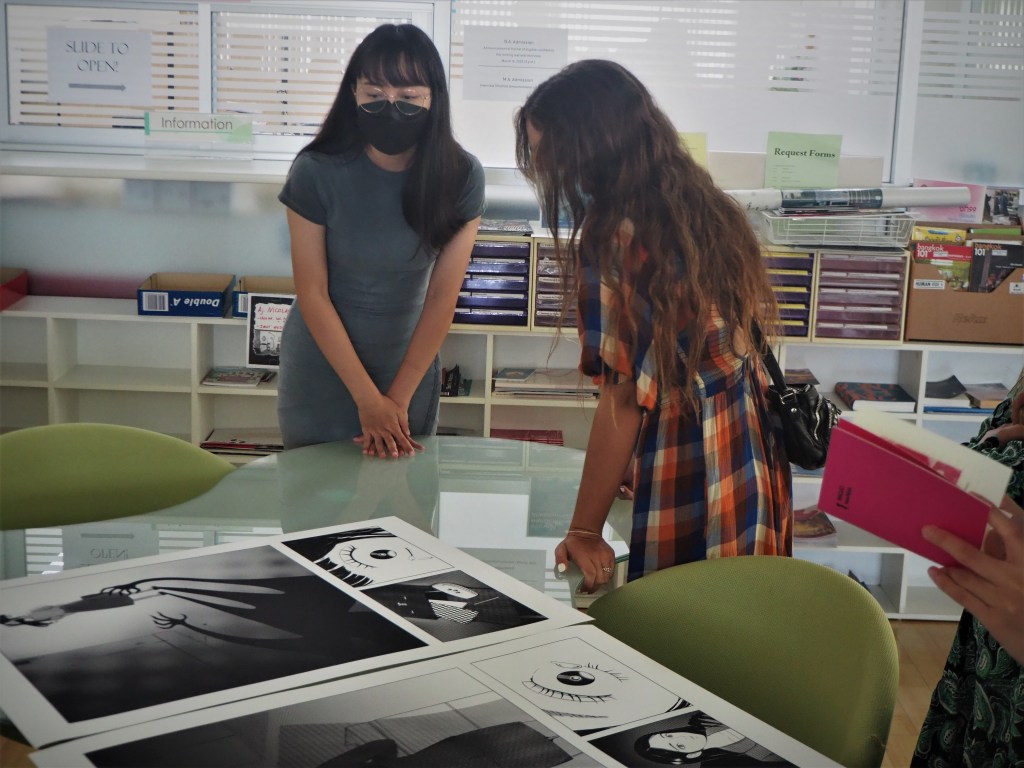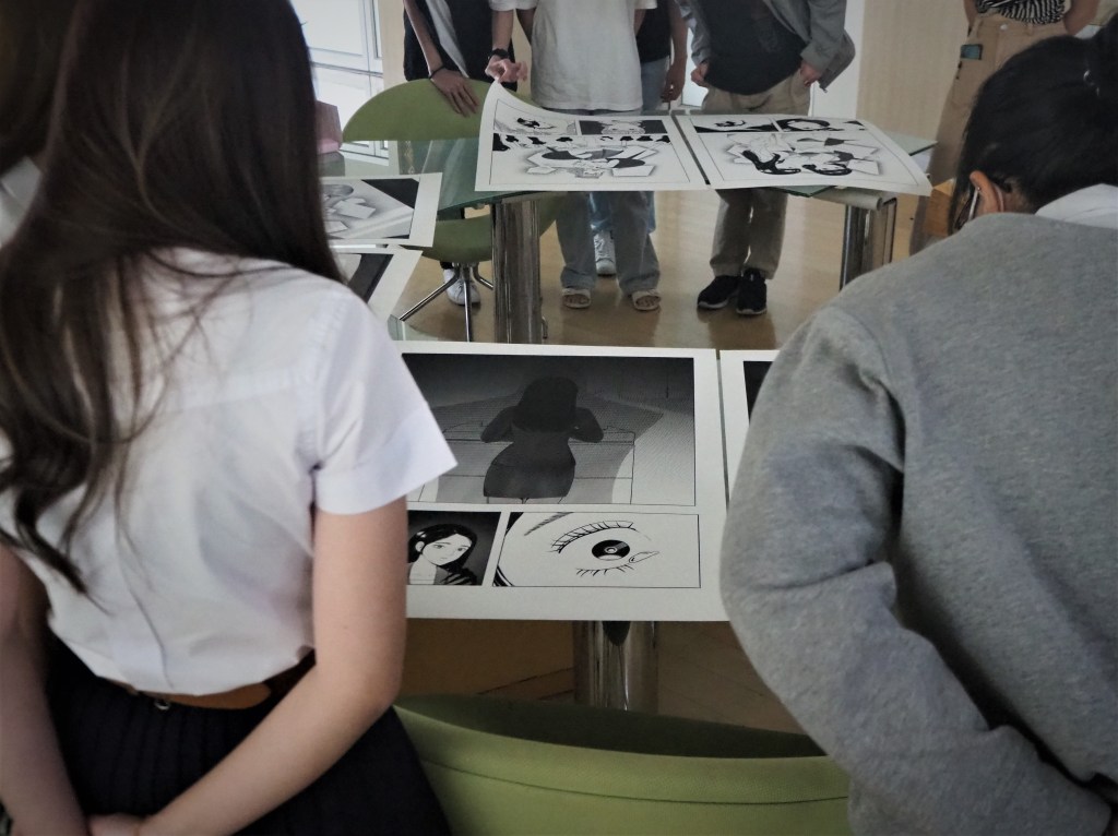 The students got the opportunity to take a close look at Isaree Pipatpongsa’s stunning A1 comics digital prints and thesis journey kit.