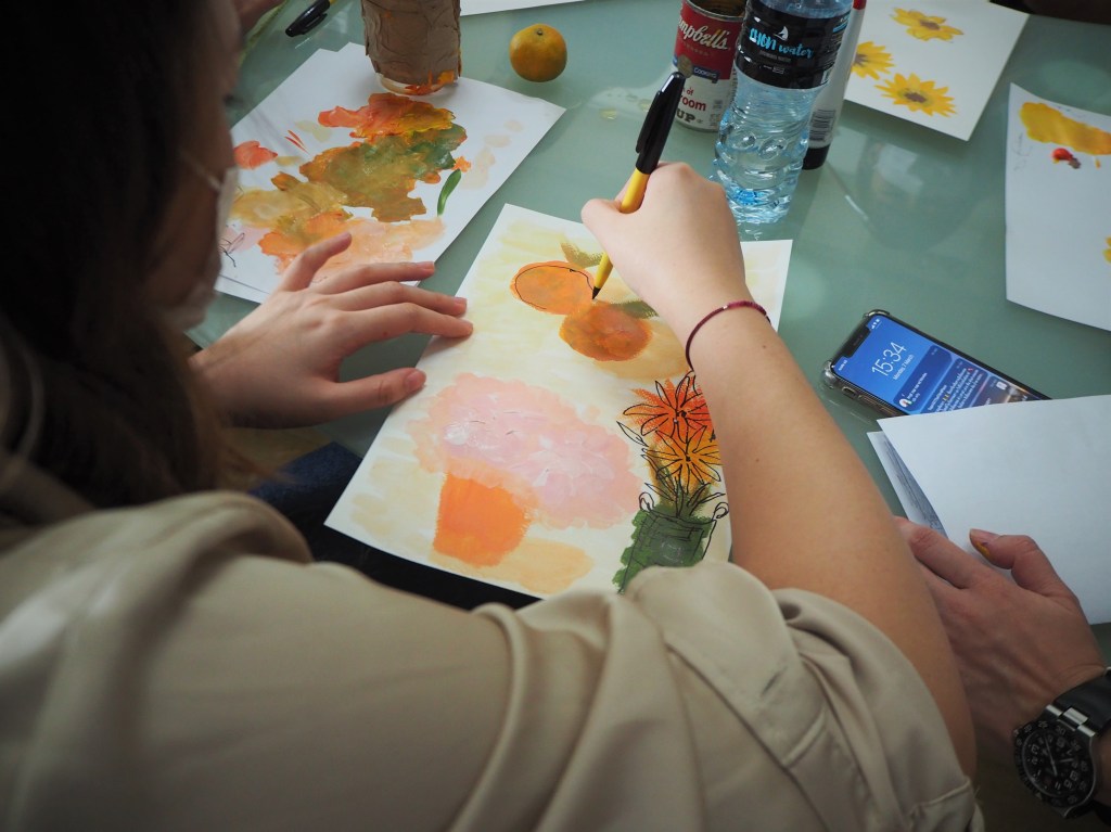 Pictures from Superfah Jellyfish’s talk and workshop on the creative use of acrylic painting and black markers to address body positivity.