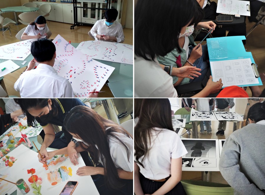 March 29, 2022. Fourth and final guest lecture/workshop for the semester. The Inter CommArts students of my Imaginative Communication course welcomed Thai artist Isaree Pipatpongsa (Izary P. Pipat). Khun Isaree talked about her thesis Rape culture awareness campaign through the female perspectives and Shojo Manga influences (School of Fine and Applied Arts, Bangkok University), with an introduction to the history of Shōjo Manga, her take on the genre to address the issue of Rape Culture in Thailand, her thesis process and design concepts, and a presentation of the resulting [and stunning] A1 comics digital prints, animation and journey kit. The students then participated in a workshop, revisiting Shōjo Manga pages with various techniques (drawing, tracing paper layers, screentones, diplopia effect, collage…) to reveal insidious aspects of the Rape Culture. It was a fascinating talk and highly meaningful and creative workshop! [All safety measures were respected with mandatory masks, hand-washing, and ATK tests before the lesson for all participants].