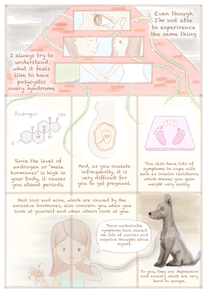 Graphic medicine narrative on polycystic ovary syndrome, by Thai student Nawara Pongsri [Klai] (BALAC; Language and Culture). Page 3/3
