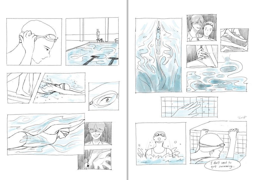 Traumics by Thai student Mint (INDA, Faculty of Architecture). Two-pager comics.