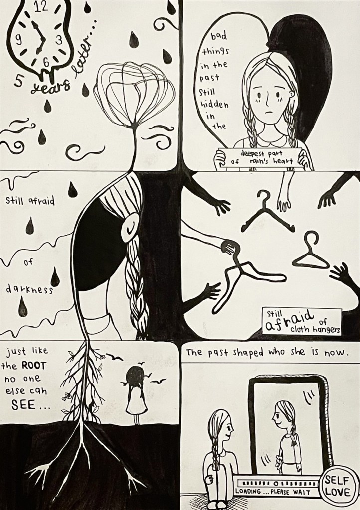 Traumics by Thai student Torfun (BALAC; Language and Culture). Two-pager comics.