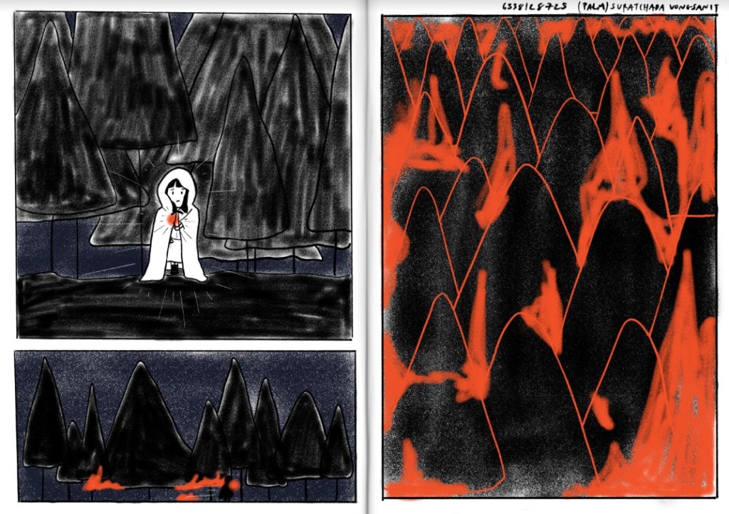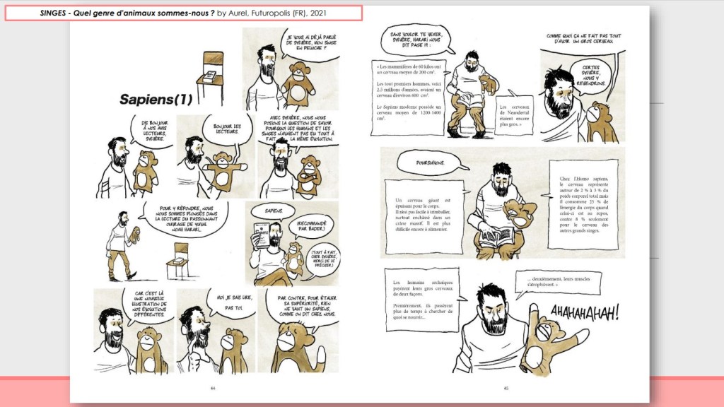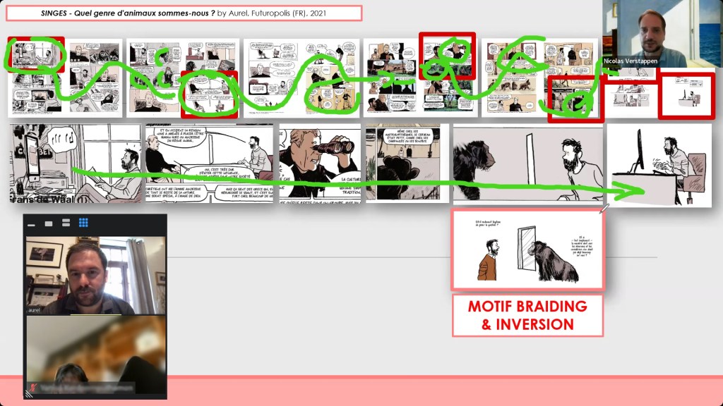 We discussed animation/comics medium specificities, graphic non-fiction composition, science popularization through adult-aimed comics (with the in-depth analysis of a wonderful sequence from Aurel’s Singes, Futuropolis, 2021) with Thai and Myanmar students from my Visual Media Studies course developed for the Faculty of Communication Arts and hosted by BSAC (Bachelor of Science in Applied Chemistry), Chulalongkorn University.