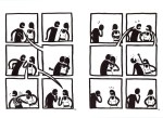 Analysing comics motif braiding, page composition, text/image interplay, abstraction tricks, variety of techniques and standpoint inversion in a remarkable 12-page sequence from the comics Singes by Aurel.