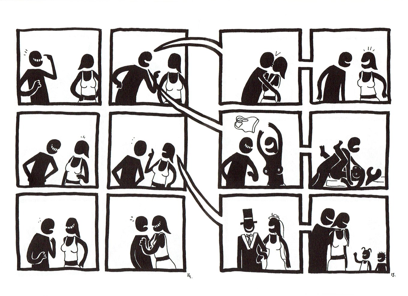 Page from Jason’s comics Why Are You Doing This?(Fantagraphics, 2005). Imposed lines for the exercise were excerpted from panels 6 to 12.