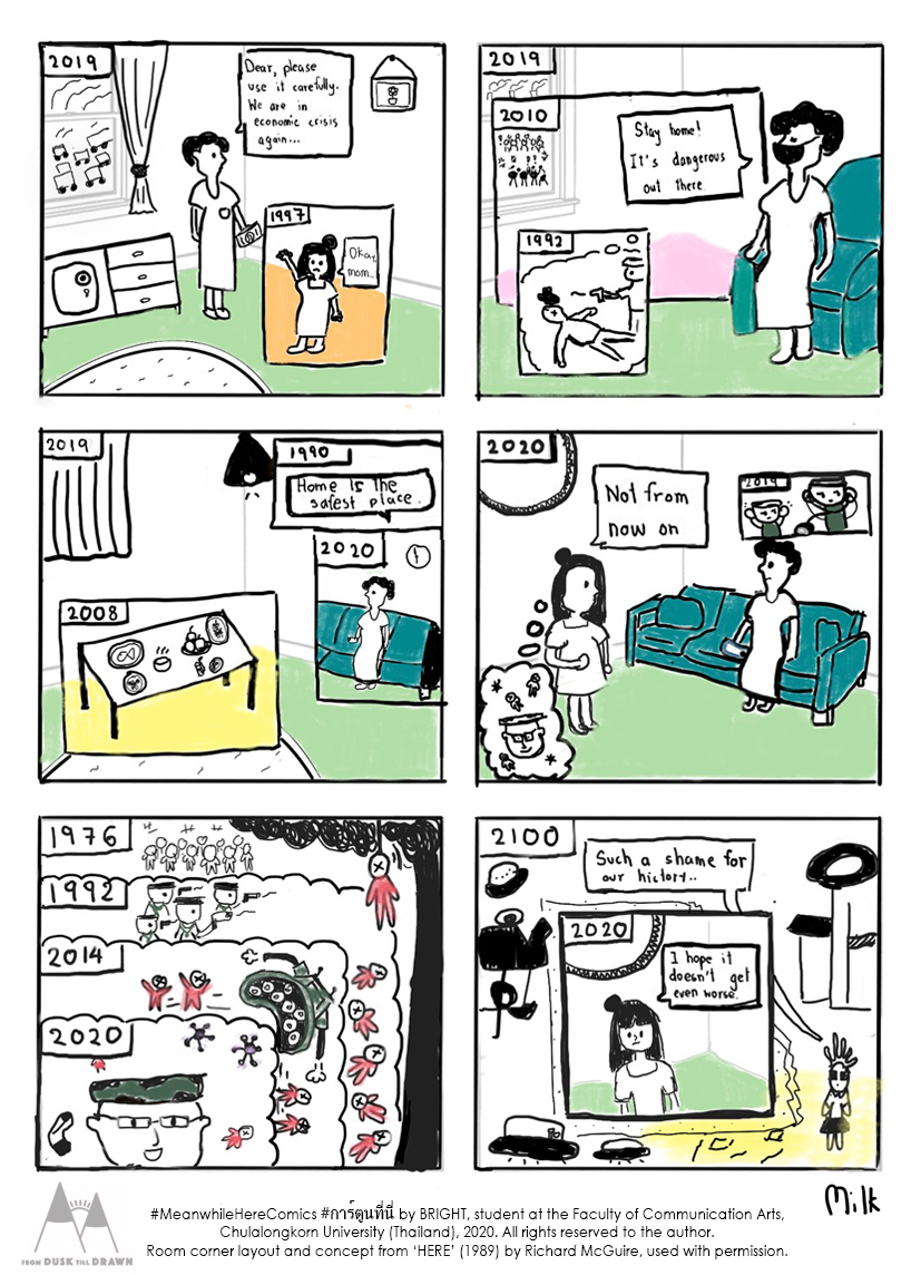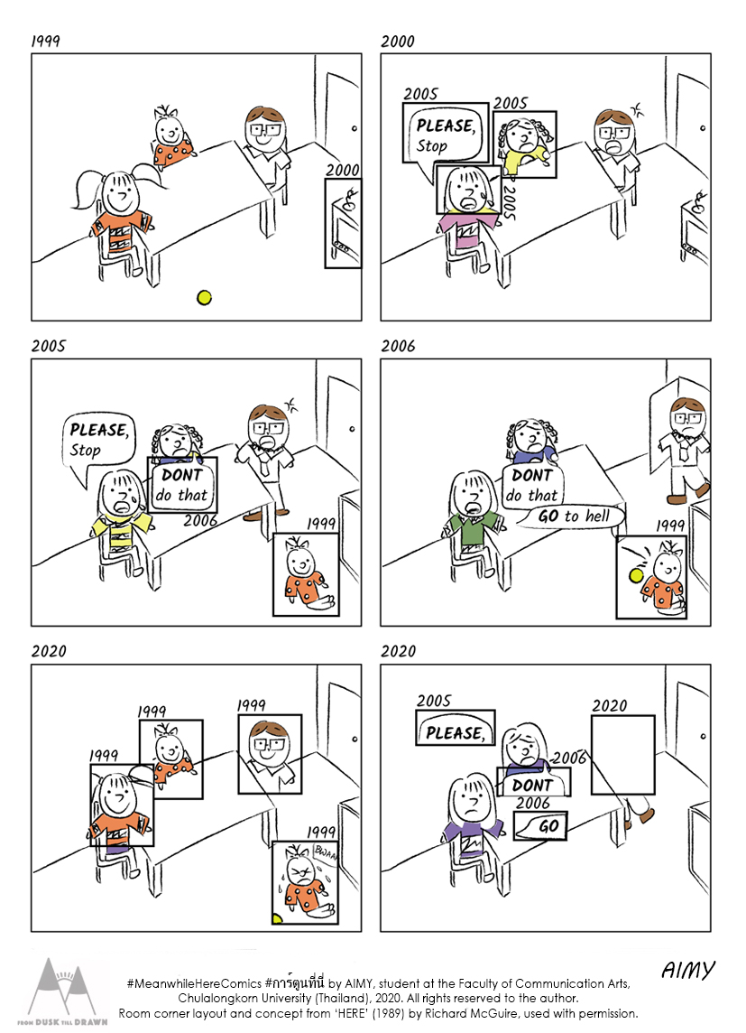 The following 17 ‘Traumics’ (comics on trauma) or Graphic Medicine narratives were produced by Thai or exchange students from various faculties (Psychology, Architectural Design, Language and Culture, Communication Design, Communication Arts, Engineering) at Chulalongkorn University, Thailand, during the Covid-lockdowns in 2021 and 2022 as the final creative projects of two of my courses: Imaginative Media, a comparative course on the representation of Refugee Narratives and Psychic Trauma in various media (literature, comics, movies, tv series, dance/choreographies, paintings…), and Visual Media Studies, a ‘General Education’ course mostly dedicated to the study of Graphic Narratives and Comics Art. Both courses include the study of Psychic Trauma and its representations through a series of lessons based on the seminal works of psychiatrists François Lebigot, Louis Crocq and Sándor Ferenczi, and on my conferences on Comics as a Language of Symptoms of Psychic Trauma. All students were made aware of the challenging nature and content of the courses on the first lesson (and could choose to drop the course, or skip the triggering content/lessons); they were free to select their graphic narrative’s topic, but it had to be related to psychic trauma or any other mental/health issues, and to change their topic at any point, if the ‘graphic’ composition felt too challenging. Some stories are based on personal experiences, other are based on research by the students. In preparation of the composition of their graphic narratives, we’ve analysed pages from a dozen trauma-related short comics or graphic novels from the US, Canada, Taiwan, Vietnam, Belgium or France. Along the semester, students worked on various (constrained/experimental) comics composition assignments. During the last weeks of the semester, individual consulting sessions with yours truly were held, one to discuss the first layout and a second to improve some elements of the advanced draft of their comics. Most of the students had no prior art/comics training, and the following stories are usually their very first comics narratives. Most stories reveal the crushing weight of social pressure/conformity in Thailand (and Asia), and that -if comics studies were rightfully considered and fully integrated in the university curriculum- students would be able to produce many more sophisticated and meaningful graphic narratives on social issues and as a means of self-expression and of mindful communication.