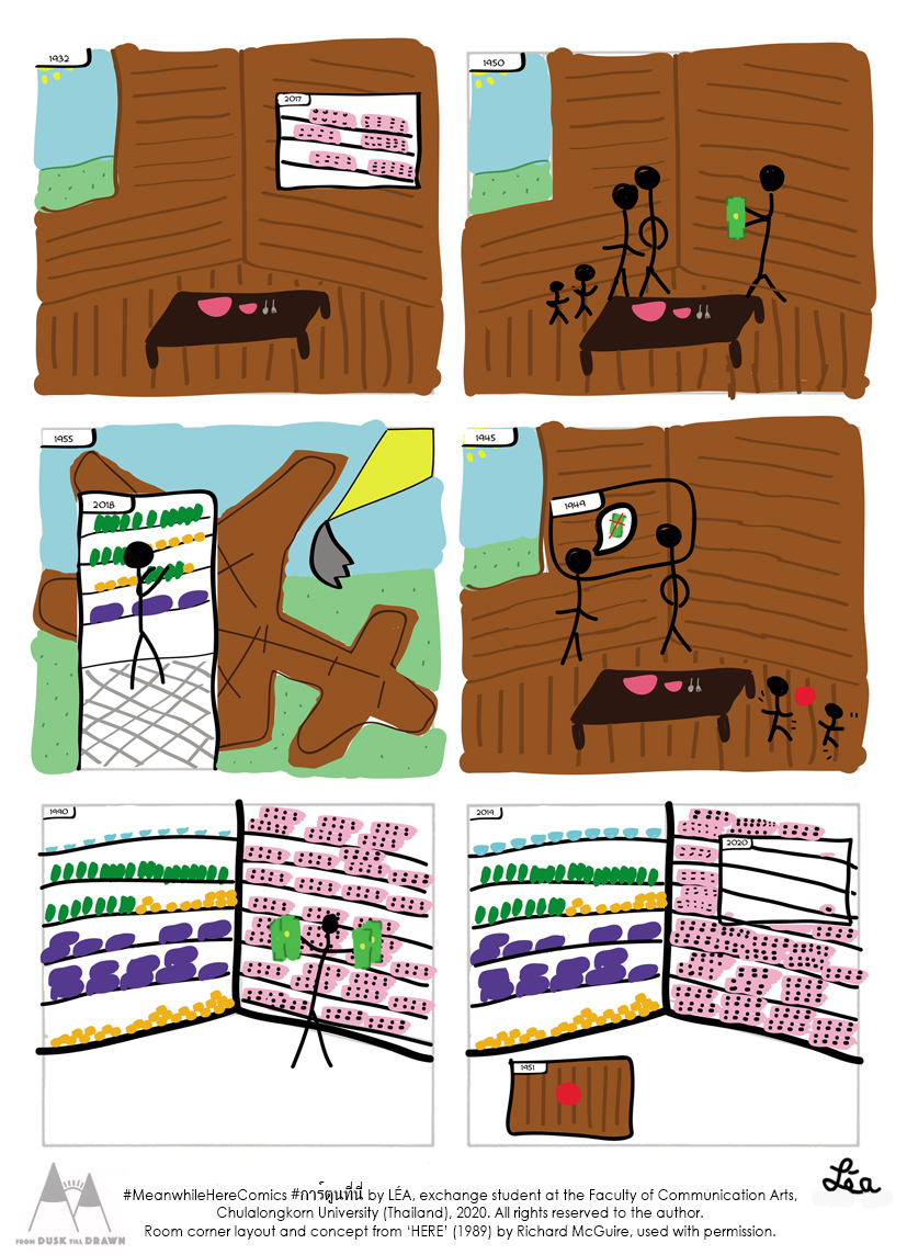 My deepest thanks to all my students as they were always fully dedicated to the ‘unconventional’ content of my courses and to the comics assignments they were given. More comics have been produced during these two courses, but some were either redundant with the stories presented here or need some additional editing before publication. More graphic narratives should be published online soon.