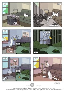 #BiggerQuestions: in-class creative assignment; weaving 7 scattered wordless panels (taken from Anders Nilsen‘s Big Questions) into a 2-page narrative. Various results by CommDe students over here.